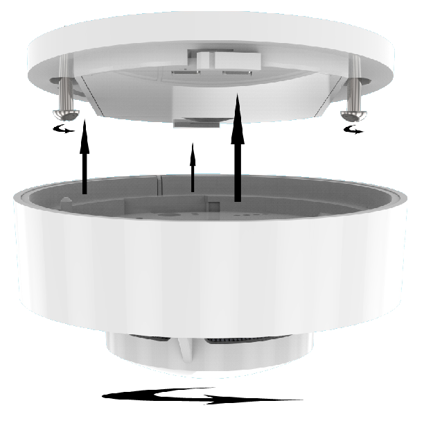 Kiinnitä kaikki hälytykset, jotka on liitetty toisiinsa kiinnityslevyyn ja kierre myötäpäivään. Sitten savuhälytys tulee valmiustilaan. Mutta nämä yksiköt eivät ole toisiinsa yhteydessä toisiinsa.
