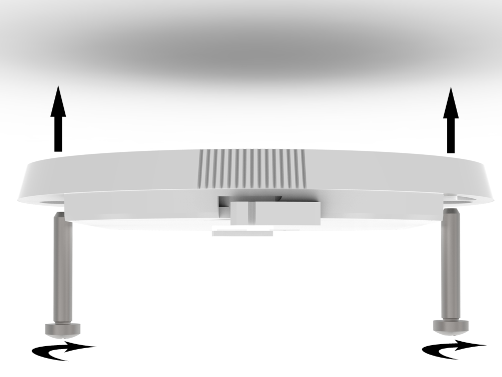 5.21 Pidä kiinnityslevyä valittuun asennusasentoon kattoon ja merkitse reikien keskikohtaa lyijykynällä. Poraa reikä lyijykynän merkkien läpi ja käytä mukana olevia ruuveja ja ankkureita kiinnityslevyn kiinnittämiseksi. (Katso kuvio 4)