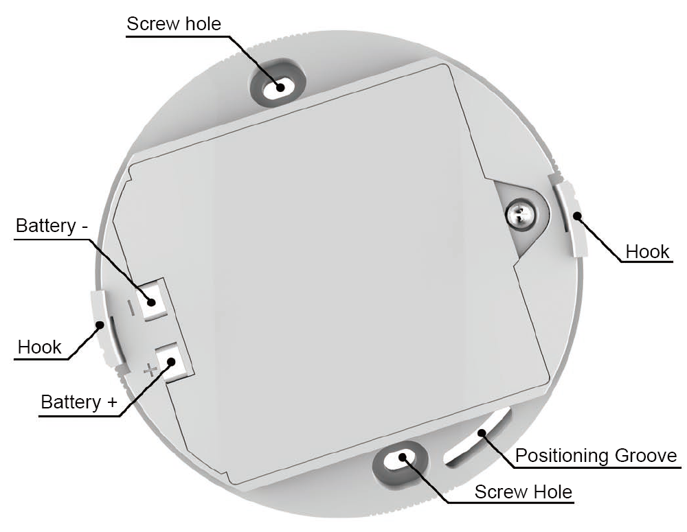 5.22 Aseta kiinnityslevyn koukku hälytyksen aukkoon, paikannuspylväs tulisi myös kohdistaa paikannusuran kanssa. Kierrä hälytystä myötäpäivään, kunnes se napsahtaa paikalleen.